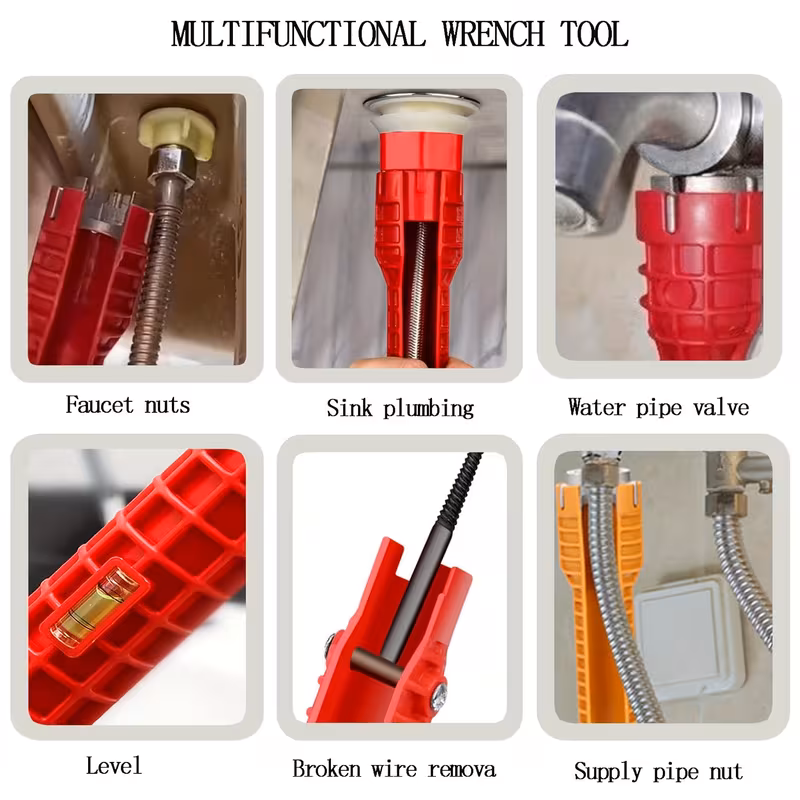 Ένα Γεμιστό Κλειδί Λεκάνης Οκτώ-Σε-Ένα για Εγκατάσταση Βρύσων και Νεροχύτων, ένα Πολυλειτουργικό Εργαλείο για Υδραυλικά, Κατάλληλο για Στενούς Χώρους σε Τουαλέτες, Νεροχύτες, Μπάνια και ΚουΈνα Γεμιστό Κλειδί Λεκάνης Οκτώ-Σε-Ένα για Εγκατάσταση Βρύσων και Νεροχύτων, ένα Πολυλειτουργικό Εργαλείο για Υδραυλικά, Κατάλληλο για Στενούς Χώρους σε Τουαλέτες, Νεροχύτες, Μπάνια και Κουζίνες.