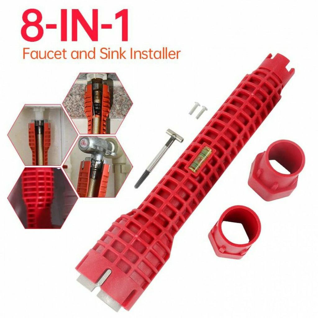 Ένα Γεμιστό Κλειδί Λεκάνης Οκτώ-Σε-Ένα για Εγκατάσταση Βρύσων και Νεροχύτων, ένα Πολυλειτουργικό Εργαλείο για Υδραυλικά, Κατάλληλο για Στενούς Χώρους σε Τουαλέτες, Νεροχύτες, Μπάνια και Κουζίνες.