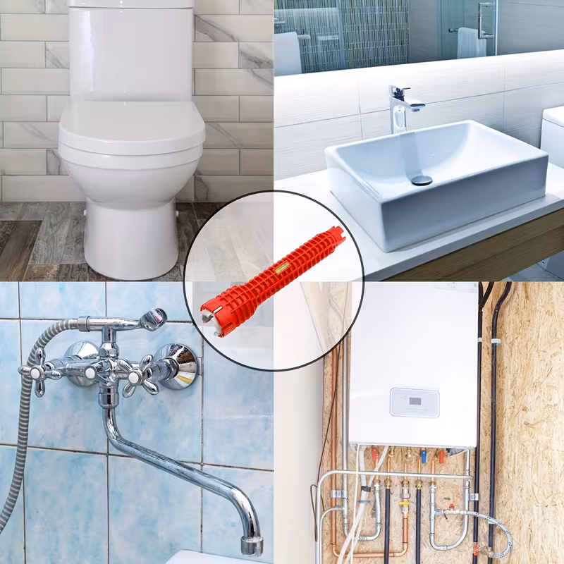 ζίνες.Ένα Γεμιστό Κλειδί Λεκάνης Οκτώ-Σε-Ένα για Εγκατάσταση Βρύσων και Νεροχύτων, ένα Πολυλειτουργικό Εργαλείο για Υδραυλικά, Κατάλληλο για Στενούς Χώρους σε Τουαλέτες, Νεροχύτες, Μπάνια και Κουζίνες.