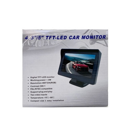 Αναδιπλούμενη οθόνη αυτοκινήτου TFT-LCD Monitor 4.3″ Διαθέτει 2 εισόδους, η λευκή για κάμερες οπισθοπορείας και η κίτρινη για DVD αυτοκινήτου ή άλλες συσκευές βίντεο. Υποστηρίζει βίντεο: PAL/NTSC. Η οθόνη διπλώνει για μεγαλύτερη ασφάλεια και αποφυγή γρατζουνιών ή σκόνης. Εύκολη εγκατάσταση. Χαμηλή κατανάλωση. Η συσκευασία περιλαμβάνει αντιολισθητική βάση. *Δεν διαθέτει είσοδο ή έξοδο ήχου. ΧΑΡΑΚΤΗΡΙΣΤΙΚΑ: Μέγεθος οθόνης: 4.3″ Ανάλυση: 480 x 272 pixels Τάση: 12V Διαστάσεις (κλειστό): 13.5 x 11 x 3 cm