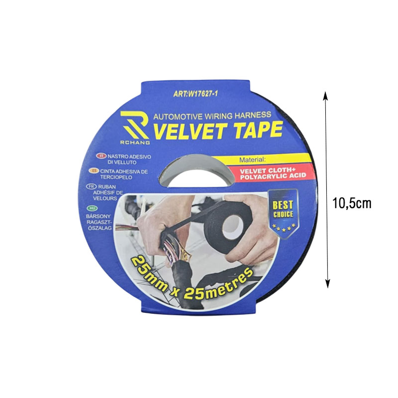 Η αυτοκόλλητη ταινία βελούδου Rchang είναι ιδανική για την τακτοποίηση και προστασία καλωδίων στο εσωτερικό του αυτοκινήτου. Με σύνθεση από ύφασμα βελούδου και πολυακρυλικό οξύ, προσφέρει εξαιρετική ανθεκτικότητα, ευκολία στην εφαρμογή και επαγγελματικό φινίρισμα. Κατάλληλη για χρήση σε συστήματα καλωδίωσης, καλύμματα και σημεία που απαιτούν μόνωση ή απορρόφηση θορύβων.