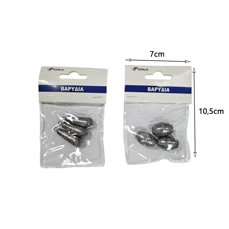 Τα βαρίδια ψαρέματος Toplix είναι ιδανικά για παράκτιο και βυθιζόμενο ψάρεμα. Κατασκευασμένα από ανθεκτικό μολύβι, διαθέτουν στριφτάρι ή κρίκο για εύκολη σύνδεση με την αρματωσιά. Παρέχουν σταθερότητα στην κάθοδο και ιδανική πλεύση του δολώματος, ακόμα και σε ρεύματα.