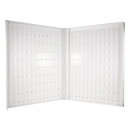 Δειγματολόγιο Βιβλίο Νυχιών 216 θέσεων Δειγματολόγιο Νυχιών 216 θέσεων για να παρουσιάστε την εργασίας σας, τα χρώματα και τα σχέδιά σας. Παρουσιάστε την εργασία σας επαγγελματικά. Έχει το σχήμα ενός βιβλίου, και κλείνει με μαγνήτες. Χαρακτηριστικά: -Δημιουργήστε το δικό σας χρωματολόγιο, χωρίς κόλλα, εύκολα, γρήγορα και επαγγελματικά .Χρησιμοποιήστε το δειγματολόγιο νυχιών για να επιλέξουν οι πελάτες σας την απόχρωση του απλού ή μόνιμου βερνικιού που τους αρέσει, κάποιο σχέδιο nail art. -Κλείνει με μαγνήτες. -Δεν περιλαμβάνονται τα tips. -Δύο σελίδες από 108 θέσεις η κάθε μία. Σύνολο 216 θέσεις.