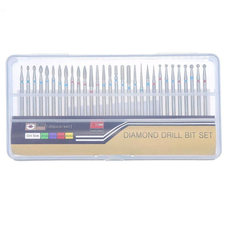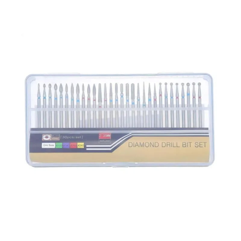 Διαμαντόφρεζες για τροχό νυχιών σετ 30τεμ σε κασετίνα – Diamond drill bit set Διαμαντόφρεζες για Τροχό Νυχιών Σετ 30 τεμαχίων σε κασετίνα. Κοπτικά τροχού για μανικιούρ. Μύτες για Τροχό Νυχιών, Σετ 30 τεμαχίων σε κασετίνα Ανταλλακτικά τροχού μεταλλικά για μανικιούρ. Περιέχει 30 τεμάχια Υψηλής ποιότητας. Σετ 30 τεμαχίων σε κασετίνα για τροχό νυχιών διάμετρος σφήνας 2,35 mm. Μπορεί να τοποθετηθεί στους περισσότερους τροχούς. Κατασκευασμένα από ανοξείδωτο χάλυβα για να μη σκουριάζουν.
