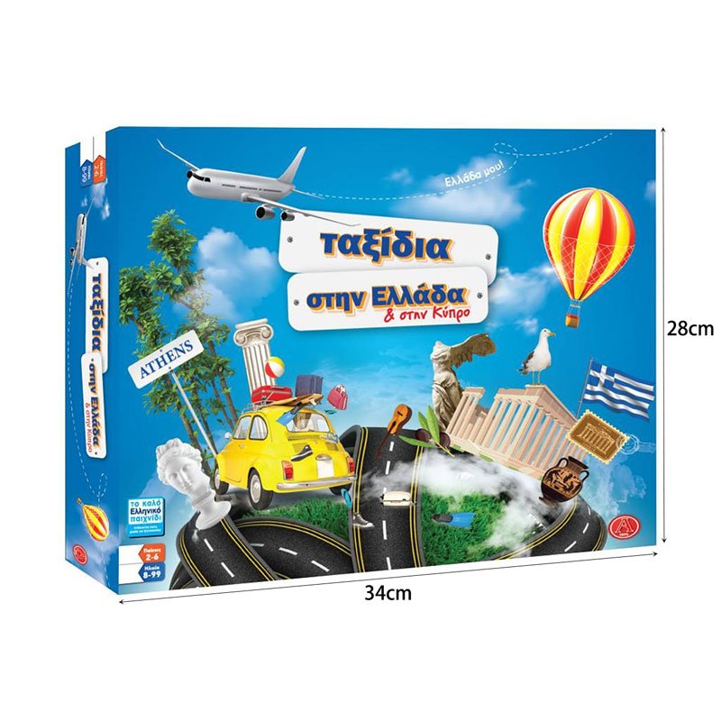 Γνώρισε την Ελλάδα και την Κύπρο ταξιδεύοντας. Επιτραπέζιο που βοηθάει να αποκτήσει το παιδί γνώσεις γεωγραφίας. Παίζεται με 2 έως 6 παίκτες. Ηλικίας 8+ ετών.