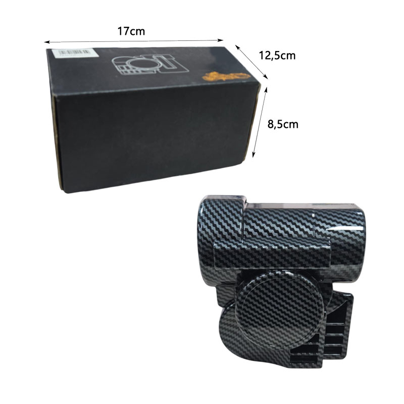 Η ηλεκτρική κόρνα αυτοκινήτου/μοτοσυκλέτας 12V 150dB είναι ένα ισχυρό και κομψό αξεσουάρ σχεδιασμένο να αυξήσει την ασφάλεια στο δρόμο. Με carbon look για εντυπωσιακή εμφάνιση, διαθέτει δυνατό ήχο 150 ντεσιμπέλ που εξασφαλίζει ότι θα γίνετε αντιληπτοί σε οποιοδήποτε περιβάλλον. Είναι ιδανική για αυτοκίνητα, μοτοσυκλέτες, φορτηγά και άλλα οχήματα 12V. Εύκολη στην εγκατάσταση, συνοδεύεται από βάση στήριξης και εξαρτήματα.