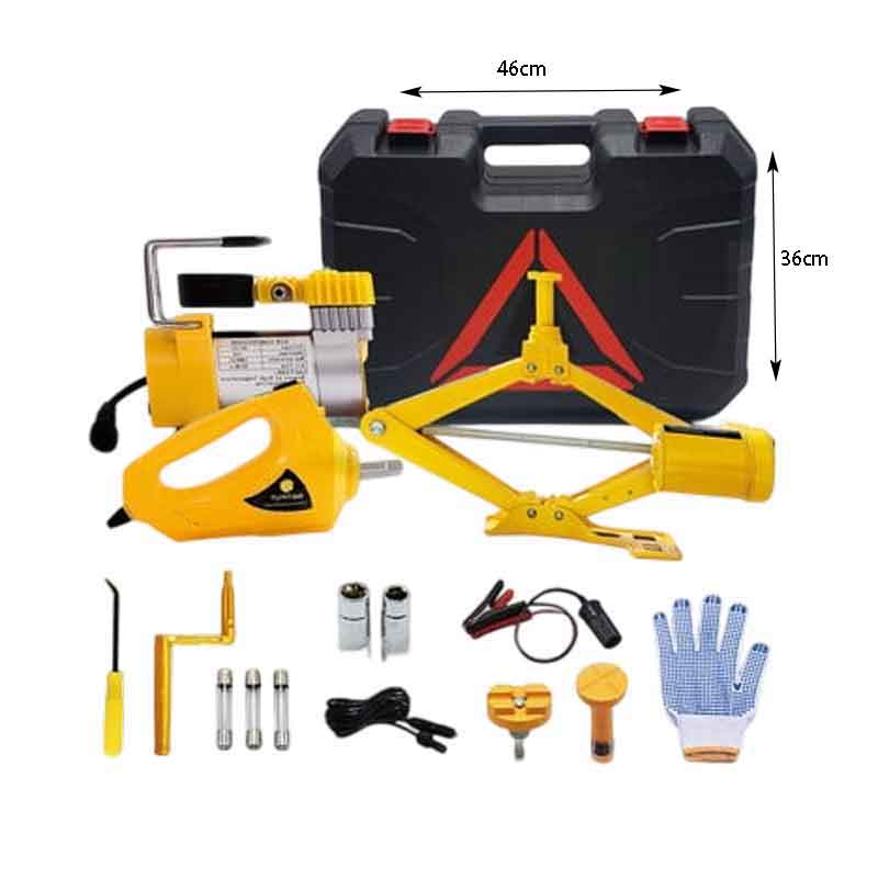 Αντιμετώπισε κάθε έκτακτη ανάγκη στον δρόμο με αυτό το πλήρες σετ ηλεκτρικού γρύλου και αεροσυμπιεστή! Ιδανικό για γρήγορη και ασφαλή ανύψωση του οχήματος και φούσκωμα ελαστικών, το σετ συνοδεύεται από όλα τα απαραίτητα εργαλεία και αποθηκεύεται εύκολα στο ανθεκτικό βαλιτσάκι μεταφοράς (46x36cm).