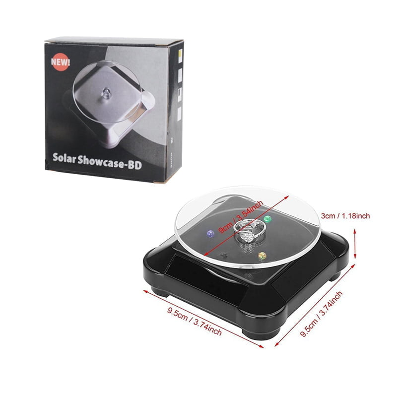 Ηλιακή περιστρεφόμενη βάση προβολής μικροαντικειμένων, εύκολη, απλή και λειτουργική ! Δώστε ζωή και κίνηση στην βιτρίνα σας με την ηλιακή περιστρεφόμενη βάση προβολής ! Προβάλετε τα προϊόντα σας στην βιτρίνα σας με ελκυστικό τρόπο, αυξήστε τις πωλήσεις σας ! Το τεχνητό φώς της βιτρίνας διεγείρει την περιστρεφόμενη βάση προβολής και την περιστρέφει, δεν απαιτείται απ ευθείας ήλιος ! Διαθέτει 4 ηλιακά πάνελ για απόδοση και με χαμηλό φωτισμό. Ιδανικό για προβολή μικροαντικειμένων έως 500γρ (ρολόγια,κινητά,κοσμήματα κ.λ.π.). Η συνεχής και ανέξοδη κίνηση τραβάει την προσοχή του πελάτη. – Προαιρετικά δέχεται και μπαταρία ( δεν περιλαμβάνεται ) για λειτουργία σε σκοτεινό περιβάλλον. Διάμετρος διάφανης περιστρεφόμενης βάσης 9εκ.