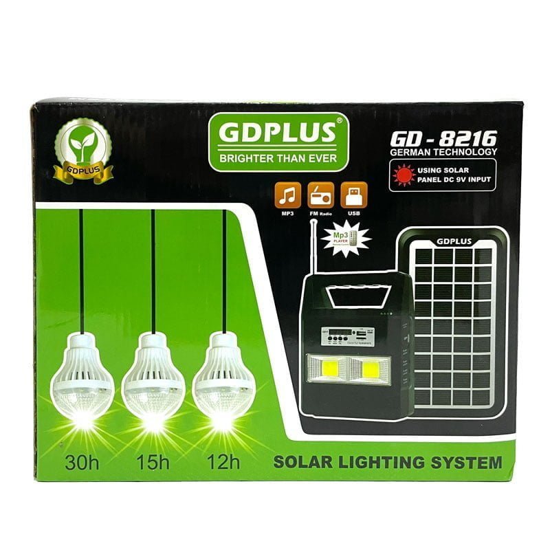 Xαρακτηριστικά Ενσωματωμένη επαναφορτιζόμενη μπαταρία 6V4ah Τάση 110-240V, 50 / 60Hz Χρόνος φόρτισης: 13 ~ 15 ώρες στο ηλιακό φως Χρόνος λειτουργίας με μία πλήρη φόρτιση: 4 ~ 6 ώρες Έξοδος: 3W Ηλιακό πάνελ 9V / 3.5W (μέγιστη είσοδος μικρότερη από 7W αλλιώς υπάρχει κίνδυνος να χαλάσετε τη μπαταρία) Έξοδος DC 6V (μπορεί να φορτίσει μέχρι 3 στοιχεία ταυτόχρονα) USB λειτουργία φόρτισης κινητού τηλεφώνου Κατά την περίοδο των βροχών, η μπαταρία δεν μπορεί να φορτιστεί πλήρως από ηλιακούς συλλέκτες Διαστάσεις μπαταρίας: 15 * 20 * 6 cm Διαστάσεις ηλιακού πάνελ: 26 * 14c * 1,5 εκ Καλώδιο λαμπτήρων: 3,90 μέτρα