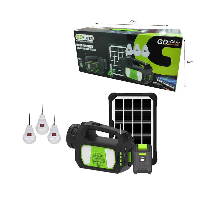 Ηλιακό Πακέτο Φωτισμού Με Πάνελ, 3 Λάμπες Με Ραδιόφωνο GDSuper GD-C6FM