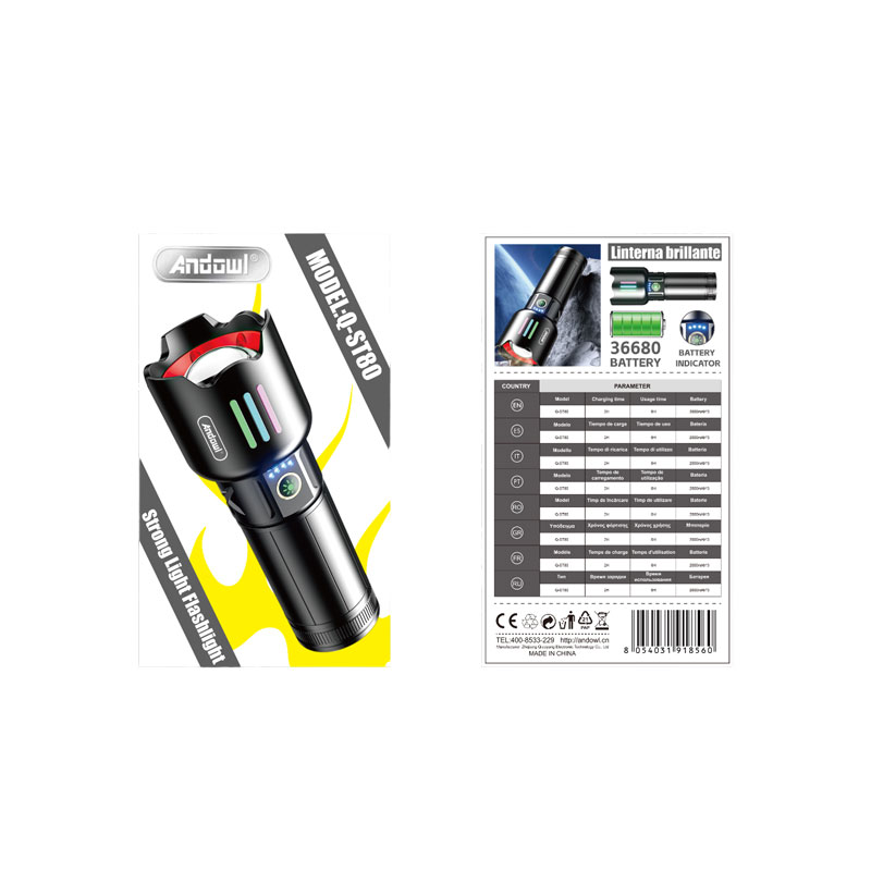 Ισχυρός Φακός Χειρός Επαναφορτιζόμενος LED Laser Andowl Q-ST80 – Strong Light Flashlight