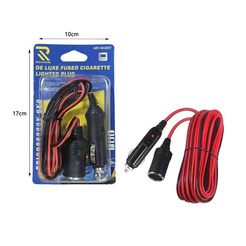 Πρακτικό καλώδιο προέκτασης αναπτήρα αυτοκινήτου με βύσμα και υποδοχή 12V, ιδανικό για την τροφοδοσία συσκευών σε μεγαλύτερη απόσταση από την πηγή ρεύματος του οχήματος. Με μήκος καλωδίου περίπου 3 μέτρα και ενσωματωμένη ασφάλεια για ασφαλή χρήση.
