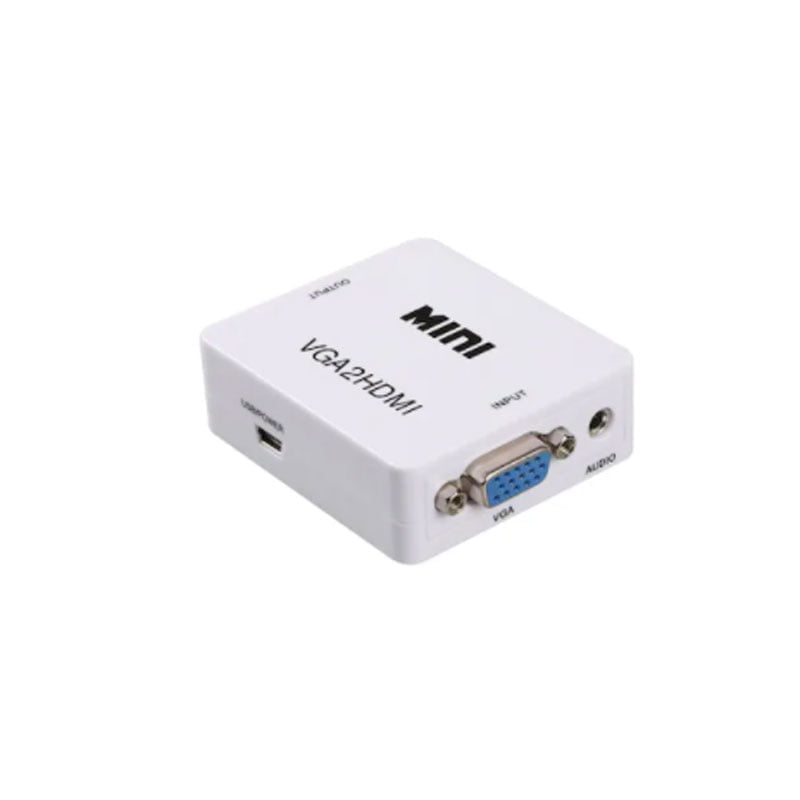 Ο προσαρμογέας VGA σε HDMI μπορεί να μετατρέψει το γενικό σήμα υπολογιστή και το σήμα ήχου σε μορφή HDMI για οθόνες HD. Με αυτόν τον μετατροπέα, ο υπολογιστής, ο φορητός υπολογιστής, η συσκευή αναπαραγωγής DVD, οι κονσόλες παιχνιδιών και ορισμένες άλλες συσκευές βίντεο που διαθέτουν είσοδο VGA μπορούν να συνδεθούν σε μεγάλες οθόνες HD ή προβολείς HD με είσοδο HDMI. Μπορεί να αναβαθμίσει το αναλογικό σήμα βίντεο από την πηγή εισόδου υπολογιστή σε ψηφιακή έξοδο HDMI, UP T0 720P ή 1080P. Εκτός από την αναβάθμιση βίντεο, το κιβώτιο κλιμάκωσης μετατρέπει επίσης το σήμα εισόδου ήχου από 3,5 mm σε ψηφιακές μορφές και, στη συνέχεια, την έξοδο σε HDMI χτένισμα με το βίντεο. Παράδειγμα εφαρμογής μετατροπέα βίντεο HD: 1. Κάμερα HD 2. Προβολή 3. Ακουστικό 4. Προβολή 5. Αποκωδικοποιητές συσκευές αναπαραγωγής HD Blu-ray DVD player Λειτουργίες διεπαφής: 1. Διεπαφή εισόδου VGA: Συνδέστε έναν κεντρικό υπολογιστή ή φορητό υπολογιστή με διασύνδεση VGA 2. Διασύνδεση εξόδου HDMI: Συνδέστε τον μετατροπέα HDMI είναι διασύνδεση HDMI οθόνης τηλεόρασης υψηλής ευκρίνειας 3. Διασύνδεση εισόδου ήχου: Συνδέστε τη διεπαφή AUDIO OUT από υπολογιστή ή φορητό υπολογιστή 4. DC/5V: Διεπαφή εισόδου ισχύος (DC/5V 600mA) Σημείωση: Αυτός ο μετατροπέας ΔΕΝ είναι αμφίδρομος. Μετατρέπεται μόνο από VGA σε HDMI. Υποστήριξη επίλυσης: 640×480@60Hz,800×600@60Hz,1024×768@60Hz,1280×720@60Hz,1280×800@60Hz, 1280×1024@60Hz,1360×768@60Hz,1360×768@60Hz 1080@60Hz