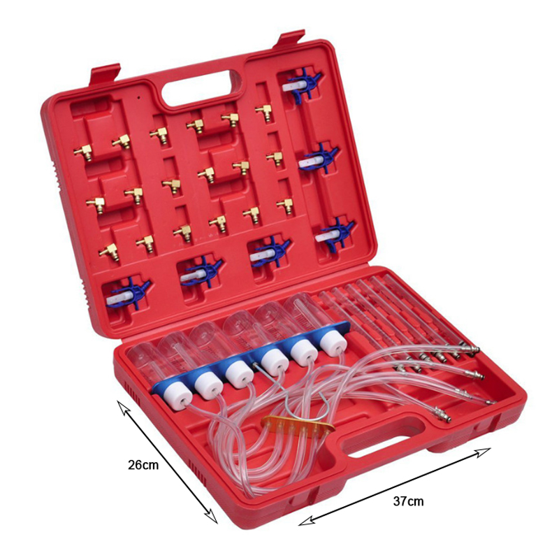 Αυτό το κιτ έχει σχεδιαστεί για να μετράει την ποσότητα καυσίμου που επιστρέφει κάθε μπεκ στη δεξαμενή καυσίμου γρήγορα και αποτελεσματικά. Έτσι, θα μπορείτε να γνωρίζετε εάν κάποιο μπεκ είναι κατεστραμμένο. Αυτό το κιτ επιτρέπει την ταυτόχρονη μέτρηση της πίεσης και των 6 μπεκ.