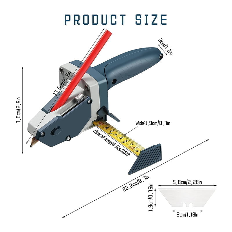 Αξιόπιστο υλικό: το εργαλείο κοπής σανίδων είναι κατασκευασμένο από κράμα αλουμινίου, πλαστικό TRP, ασφαλές, στιβαρό και ανθεκτικό στη χρήση. Η εργαλειομηχανή κοπής γυψοσανίδας 3 σε 1 μπορεί να καλύψει τις διαφορετικές σας ανάγκες μέτρησης, σήμανσης και κοπής, κάτι που είναι βολικό για ξυλουργική και οικιακή συντήρηση Κατάλληλο για μια ποικιλία υλικών: το εργαλείο κοπής γυψοσανίδας είναι πολύ κατάλληλο για γυψοσανίδα, αφρώδες χαρτόνι, σανίδα KT, μονωτικό υλικό από χαρτόνι, κρεμαστές εικόνες, κοπή υφάσματος, κόντρα πλακέ και άλλα μέρη, με μεγάλη γκάμα χρήσεων. Είναι επίσης η ωραία επιλογή δώρου για φίλους, οικογένειες και λάτρεις της χειροτεχνίας σε γενέθλια ή άλλες γιορτές Η συσκευασία περιλαμβάνει: η συσκευασία συνοδεύεται από ένα κομμάτι κόπτη γυψοσανίδας, ένα μολύβι για εγγραφή και 5 τεμάχια επιπλέον αντικαταστάσιμες λεπίδες, συνολικά 7 τεμάχια. Το ενσωματωμένο κουτί αποθήκευσης λεπίδας δεν θα αγγίξει τη λεπίδα ούτε θα βλάψει τα χέρια σας, βελτιώνοντας την ασφάλεια Εξοικονομήστε χρόνο και κόπο: ο κόφτης χαρτιού είναι εξοπλισμένος με μια ταινία μήκους έως και 5 μέτρων, ώστε να μπορείτε εύκολα να πιάσετε και να κόψετε με ακρίβεια το απαιτούμενο μέγεθος. Είναι επίσης πιο γρήγορο και πιο βολικό να σχεδιάζετε κύκλους και ευθείες γραμμές. Με την ισχυρή συσκευή κλειδώματος, μπορείτε εύκολα να μετρήσετε και να μεταφέρετε σε οποιοδήποτε υλικό. Μία μέτρηση, μία κοπή, γρήγορη κοπή, χωρίς σκόνη Απλή λειτουργία: χρειάζεται μόνο να πατήσετε το κουμπί και να εισαγάγετε τη λεπίδα για να ολοκληρώσετε την εγκατάσταση. Όταν χρησιμοποιείται, τραβήξτε τη μεζούρα στην επιθυμητή θέση και σπρώξτε το διάφραγμα με το χέρι για να σχεδιάσετε με ακρίβεια έναν κύκλο ή μια ευθεία γραμμή, γρήγορα και άνετα. Μπορεί να εφαρμοστεί εύκολα τόσο σε αρχάριους όσο και σε ειδικευμένους εργάτες