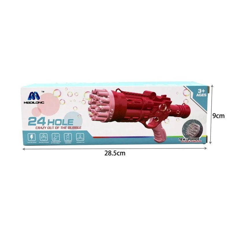 Όπλο για Άπειρες Σαπουνόφουσκες Πολύχρωμες – Συσκευή για Φυσαλίδες Σούπερ, πρωτοποριακό όπλο – παιχνίδι που εκτοξεύει ασταμάτητα εκατοντάδες πολύχρωμες σαπουνόφουσκες! Με κάθε πάτημα του κουμπιού ψεκάζει από 8 ξεχωριστές τρύπες, αλυσίδες με άπειρες σαπουνόφουσκες. Τρόπος χρήσης : • Προσθέστε σαπούνι – υγρό πιάτων, περίπου το 1/5 της φιάλης. • Γεμίστε τη φιάλη με νερό. • Ανακατέψτε καλά και αφήστε 2 λεπτά να ηρεμήσει. • Χύστε λίγο από το υγρό στο ειδικό μπολ • Τοποθετήστε την άκρη του όπλου στο μπολ • Πατήστε το διακόπτη του πιστολιού και απελευθερώστε φυσαλίδες!! Χαρακτηριστικά : • Λειτουργεί με 3 μπαταρίες ΑΑ (δεν περιλαμβάνονται στη συσκευασία). • Κατάλληλο για ηλικίες 3+ • Υλικό: ABS Χρώματα: ροζ, κόκκινο, μπλε και σκούρο μπλε