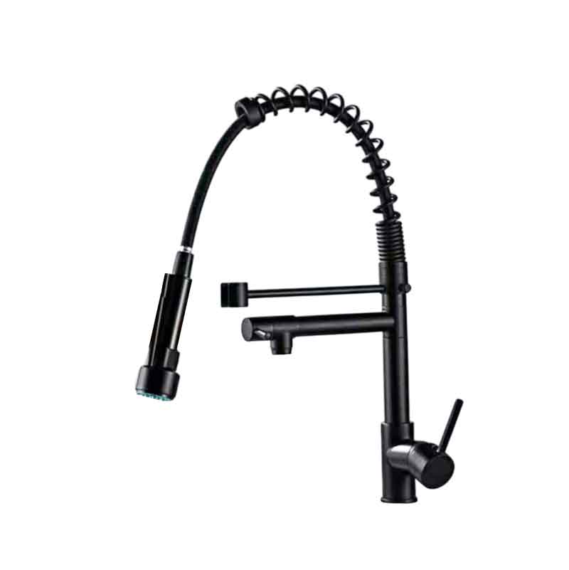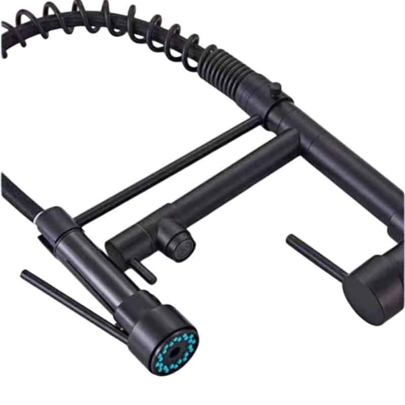 Η μοντέρνα μπαταρία κουζίνας σε μαύρο ματ χρώμα συνδυάζει κομψό σχεδιασμό και πρακτικότητα. Διαθέτει ψηλό τόξο με ελατήριο και εύκαμπτο ντους που τραβιέται, προσφέροντας άνεση στο πλύσιμο μεγάλων σκευών και ευκολία στην καθημερινή χρήση. Με ύψος 48 cm και στιβαρή κατασκευή, αποτελεί ιδανική επιλογή για κάθε σύγχρονη κουζίνα.