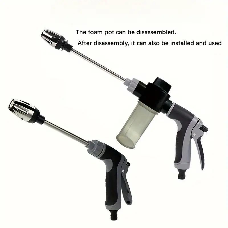 Πιστόλι Αφρού Πλυσίματος Αυτοκινήτων Υψηλής Πίεσης με Μακρύ Λαβή - Ρυθμιζόμενο Ψεκαστήρα για Καθαρισμό, Ποτίσματα και Φούσκωμα Ελαστικών - Περιλαμβάνει Κανόνι Αφρού και Μπουκάλι Ψεκασμού Πίεσης - Σχεδιασμός από Ανοξείδωτο Ατσάλι