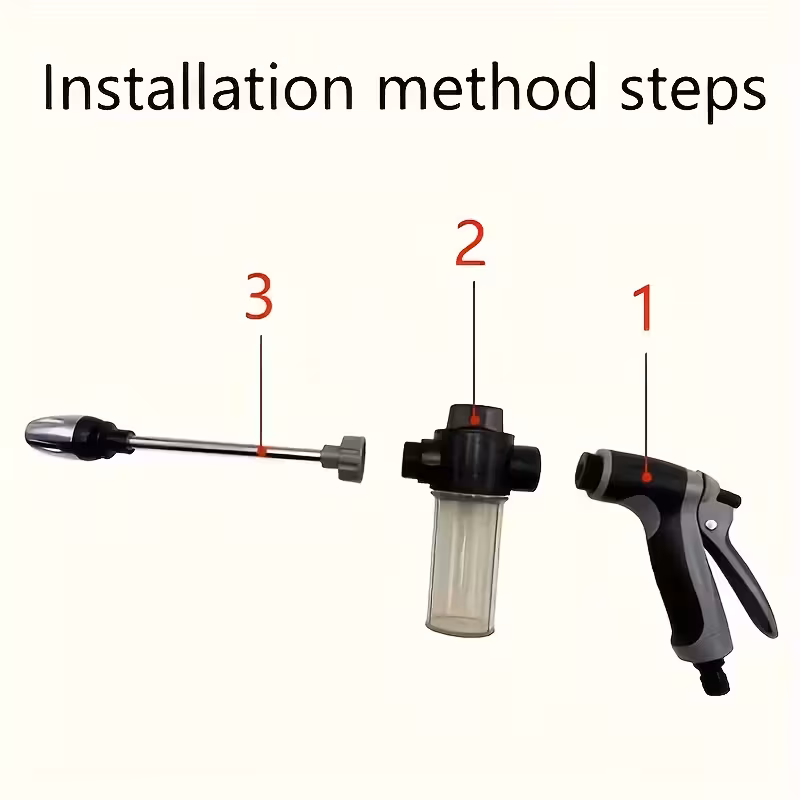 Πιστόλι Αφρού Πλυσίματος Αυτοκινήτων Υψηλής Πίεσης με Μακρύ Λαβή – Ρυθμιζόμενο Ψεκαστήρα για Καθαρισμό, Ποτίσματα και Φούσκωμα Ελαστικών – Περιλαμβάνει Κανόνι Αφρού και Μπουκάλι Ψεκασμού Πίεσης – Σχεδιασμός από Ανοξείδωτο Ατσάλι