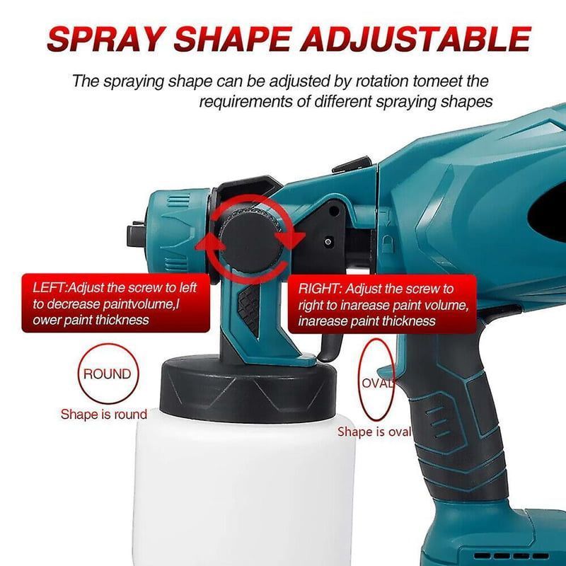 Ονομαστική τάση: 21VΟνομαστική ισχύς: 210 W Ισχύς φορτίου: 800W Απόσταση Ψεκασμού: 200-500cm Ονομαστική ταχύτητα: 38000 rpm Πλάτος: 200-300mm Ροή αέρα: 160 1/λεπτό Ροή βαφής: 500-800ml/min Χωρητικότητα δοχείου: 800ml