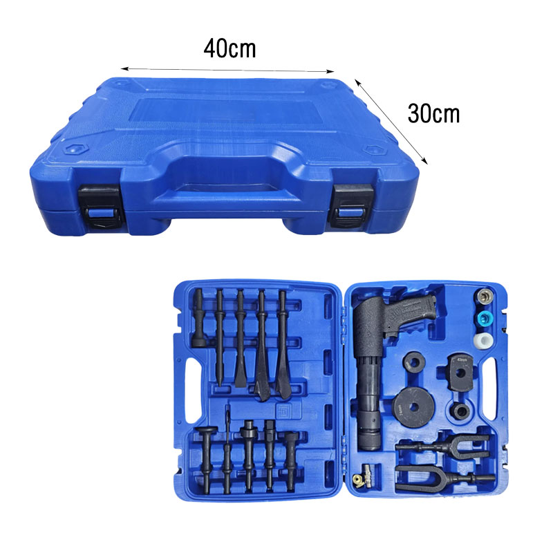 Επαγγελματικό σετ πνευματικού σφυριού μήκους 250mm, ιδανικό για εργασίες κοπής, διάτρησης και αφαίρεσης υλικών σε συνεργεία, φανοποιεία και γενική μηχανολογική χρήση. Περιλαμβάνει πλούσια σειρά ανταλλακτικών, εξαρτημάτων και 12 διαφορετικές μύτες (καλέμια) σε πρακτική πλαστική βαλίτσα μεταφοράς και αποθήκευσης.