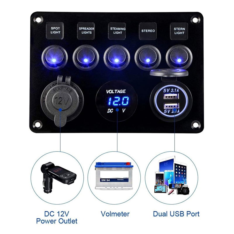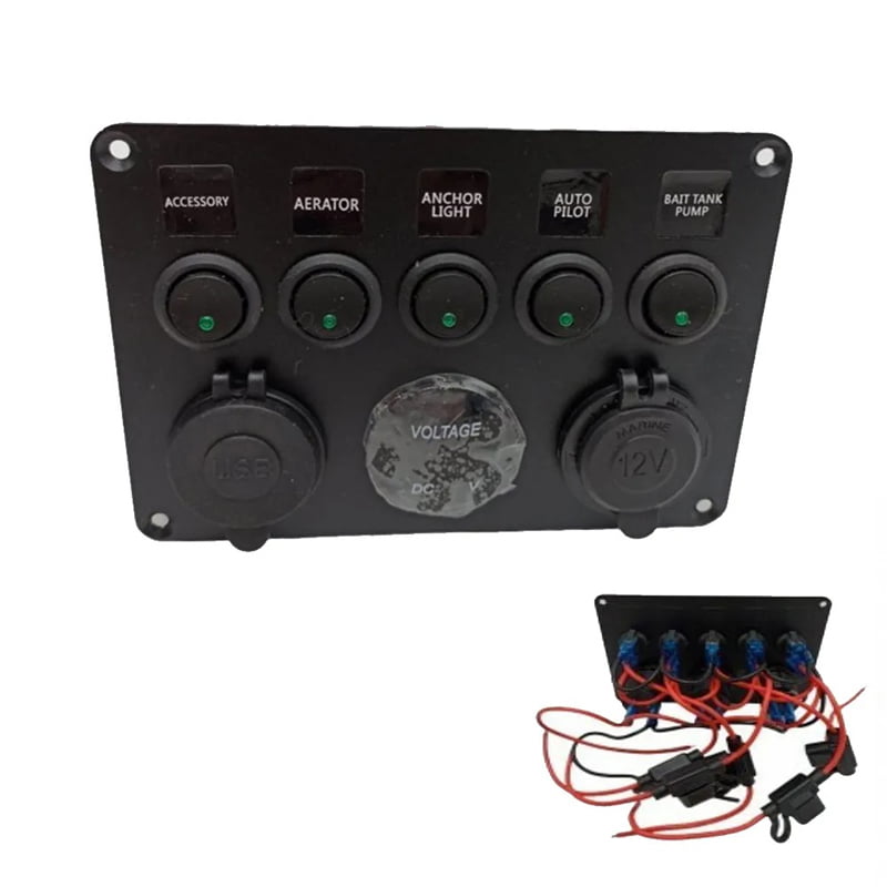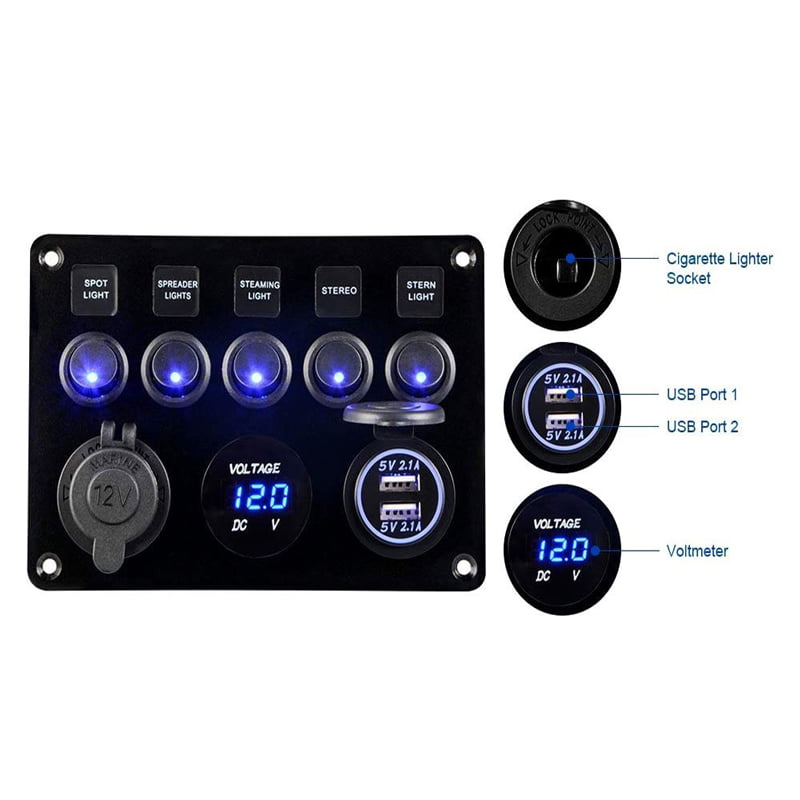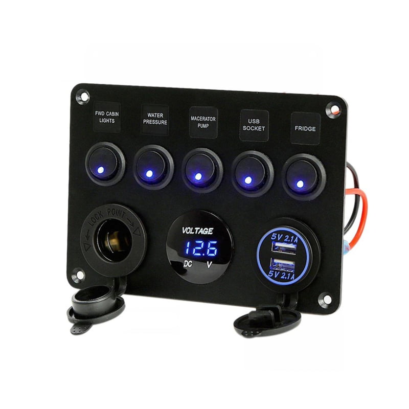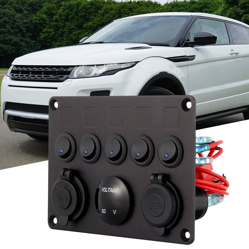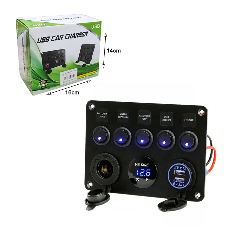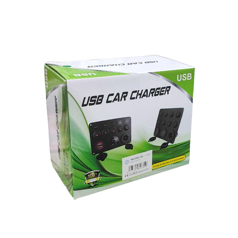Πολυλειτουργικό Πάνελ Αυτοκινήτου 2 θύρες USB, Βολτόμετρο και 5 Διακόπτες Α90 – Car USB Charger
