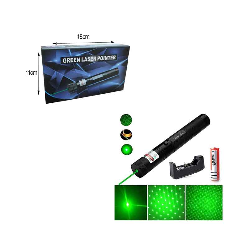 Laser pointer 303 πράσινης δέσμης φωτός, με ρυθμιζόμενη λειτουργία εστίασης και εύρος 3000m.