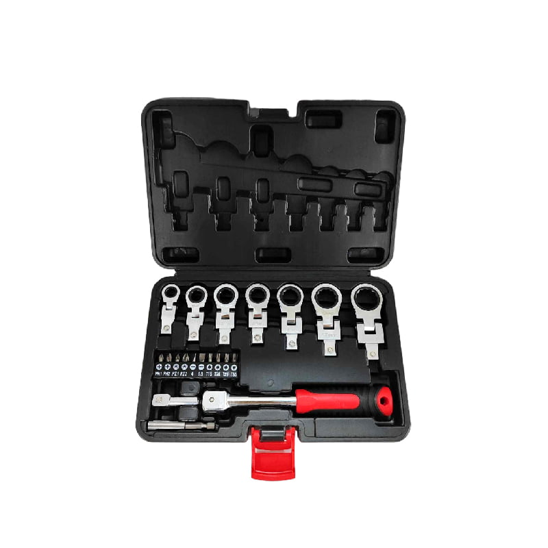 Αυτό το σετ ξεχωρίζει καθώς έχει ακριβή σχεδιασμό, απλή λειτουργία και είναι πολύ βολικό στη χρήση σε μικρούς χώρους. Είναι κατασκευασμένο από υψηλής ποιότητας ατσάλι χρώμιο βαναδίου, επιχρωμιωμένο στην επιφάνεια, με υψηλή σκληρότητα, υψηλή ροπή και καλή σκληρότητα. Είναι βολικό να χρησιμοποιείτε το κλειδί για να επιτύχετε περιστροφή προς τα εμπρός σε διάφορες χωρικές γωνίες και να συνειδητοποιήσετε τη χρήση θετικής και αρνητικής αναστροφής. Έχει πολύ εύκολη χρήση και λειτουργία. Πατήστε το κουμπί και μπορείτε να αλλάξετε τις προδιαγραφές του κλειδιού που χρειάζεστε.
