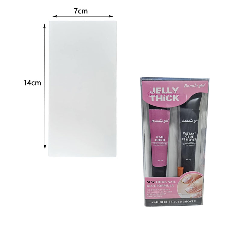 Το σετ Bonnie Girl Jelly Thick περιλαμβάνει επαγγελματικής ποιότητας κόλλα νυχιών και αφαιρετικό κόλλας, κατάλληλο για εφαρμογές τεχνητών νυχιών και nail art. Η παχύρρευστη φόρμουλα εξασφαλίζει ισχυρή συγκόλληση και μακρά διάρκεια, ενώ το ειδικά σχεδιασμένο remover απομακρύνει με ασφάλεια και ευκολία την κόλλα χωρίς να ερεθίζει τα νύχια ή το δέρμα.
