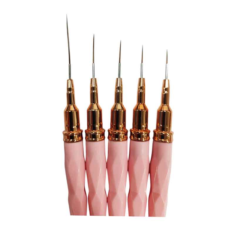 Επαγγελματικό σετ 5 πινέλων για λεπτομερή σχέδια nail art, ιδανικά για γραμμές, κουκκίδες και λεπτομέρειες σε ημιμόνιμα και gel.