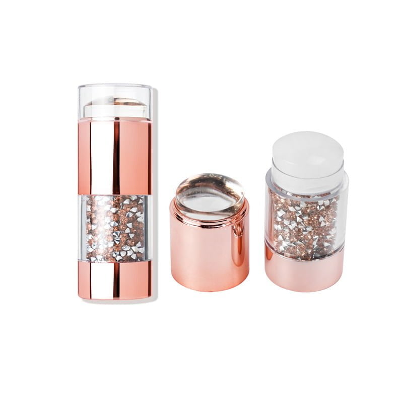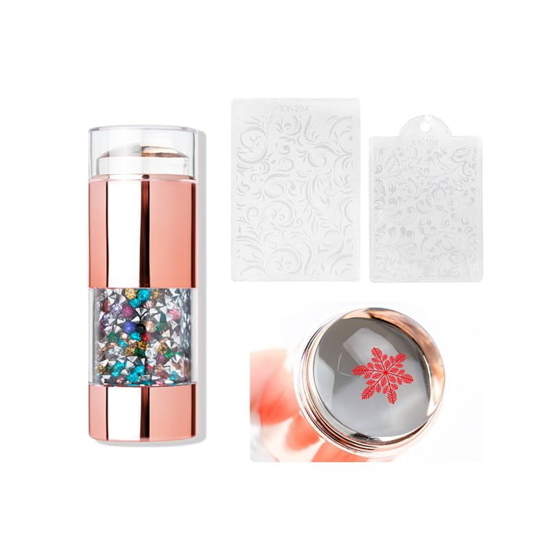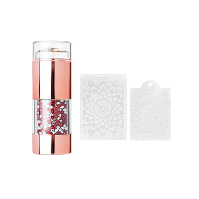 Στάμπα σιλικόνης rose gold Η Στάμπα σιλικόνης rose gold ξεχωρίζει με τα υπέροχα διακοσμητικά ενσωματωμένα στρας και με τις 2 διαφορετικές στάμπες – ξύστρες της. Διαστάσεις: πλάτος σφραγίδας σιλικόνης – 3εκ μήκος – 7,5 εκ διαστάσεις πλάκας: 7 cm x 5 cm και 5,5 cm x 4 cm Οδηγίες χρήσης: 1. Πρώτα τοποθετήστε πάνω στο σχέδιο της σφραγίδας που επιθυμείτε ειδικό βερνίκι σφραγίδας ή πάστα. 2. Ύστερα περάστε με την ξύστρα της σφραγίδας πάνω από την πλακέτα για να φύγουν τα υπολείμματα του χρώματος. 3. Έπειτα πιέστε την σφραγίδα πάνω στο σχέδιο και μεταφέρετε το στο νύχι. 4. Τέλος κλείνετε με τοπ.