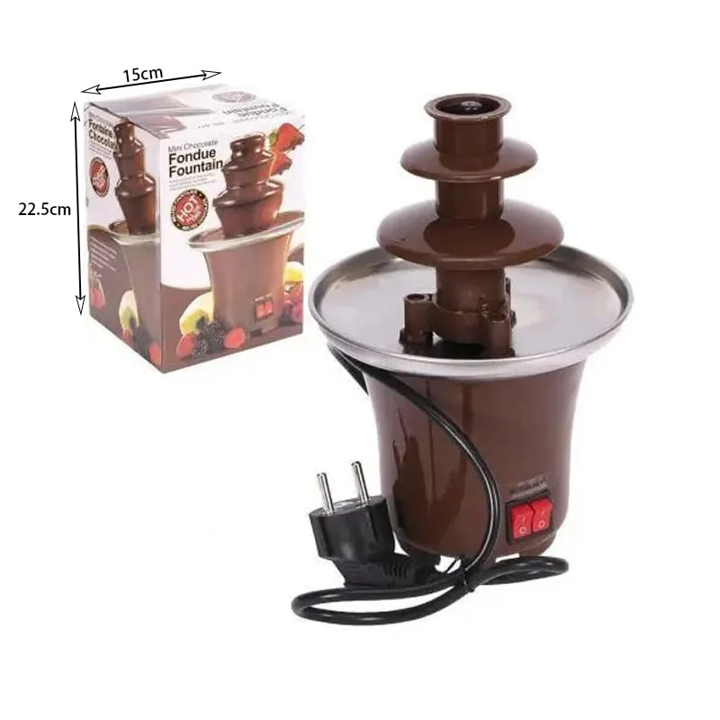Απολαύστε την αγαπημένη σας σοκολάτα βουτώντας τα φρούτα, τα μπισκότα ή ακόμα και τα δάχτυλά σας στο συντριβάνι-φοντύ. Xαρακτηριστικά: Θα κρατήσει τη σοκολάτα ιδανικά λιωμένη και ζεστή για να ρέει άφθονη σε 3 επίπεδα Διαθέτει δίσκο από ανοξείδωτο ατσάλι και κορμό από θερμοανθεκτικό πλαστικό Είναι εξοπλισμένο με 2 κουμπιά: ένα για να κινείτε τη σοκολάτα και ένα για να τη ζεσταίνετε. Επιλέξτε την αγαπημένη σας σοκολάτα, μαύρη, γάλακτος ή λευκή και χρησιμοποιήστε τη σκέτη ή με προσθήκη υλικών όπως espresso, ουίσκι, μπράντι, amaretto, γάλα καρύδας ή ότι άλλο φανταστείτε και δείτε τη να λιώνει και να τρέχει μπροστά σας Μπορείτε ακόμα να το χρησιμοποιήστε και ως φοντύ τυριών Δεν υπάρχει παιδί ή μεγάλος που δε θα εντυπωσιαστεί με το σιντριβάνι σοκολάτας Δημιουργήστε υπέροχες, αξέχαστες στιγμές κάθε μέρα Ισχύς: 30W Τροφοδοσία: 230V ~50Hz Διαστάσεις: 14,5 x 21,5 εκ. Για περίπου 100γρ. σοκολάτας
