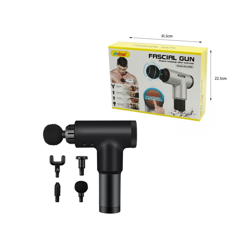 Τα πιστόλια μασάζ χρησιμοποιούνται για την ανακούφιση της μυϊκής δυσκαμψίας και του πόνου και για την προώθηση του αίματος και της λεμφικής κυκλοφορίας. – Είναι ένα πιστόλι φυσικοθεραπείας που βελτιώνει τη συνολική υγεία των μαλακών ιστών του σώματος και αποτρέπει τη φλεγμονή που προκαλείται από προσκολλήσεις μεταξύ της περιτονίας και των μυών. – 4 αντικαταστάσιμες κεφαλές μασάζ και 6 επίπεδα ρυθμιζόμενης ταχύτητας. – Το πιστόλι μασάζ είναι εξοπλισμένο με τέσσερις κεφαλές μασάζ διαφορετικού σχήματος για να βοηθήσει τον χρήστη να χαλαρώσει διαφορετικά μέρη του σώματος. – Χτυπώντας γρήγορα τους μυς, επιταχύνει την κυκλοφορία του αίματος και ανακουφίζει τον πόνο. – Οι μύες ανακινούν ταχέως καταναλώνοντας λίπος, επιτυγχάνοντας έτσι τον στόχο της αύξησης της μυϊκής μάζας. -Χρησιμοποιήστε την ίδια θέση όσο το δυνατόν περισσότερο εντός 1 λεπτού. – Η εργονομική λαβή ελαχιστοποιεί τις εξωτερικές δονήσεις. -Η ανθεκτική αντιολισθητική λαβή σιλικόνης κάνει το μασάζ πιο εύκολο και πιο άνετο. Συμβουλές για μασάζ: -1 x Μικρή στρογγυλή μπάλα μασάζ (για ανάκτηση μικρών μυών) -1 x Σπειροειδής κεφαλή (Για αρθρώσεις σώματος) -1 x Άκρη ποδιού πιρούνι (για μασάζ σπονδυλικής στήλης) -1 x επίπεδη κεφαλή (για ολόκληρο το σώμα) Προδιαγραφές: Ονομαστική ισχύς: 8W Ταχύτητα: 3600 σ.α.λ. Μπαταρία λιθίου υψηλής ενέργειας: 2000mAh Στο κουτί περιλαμβάνεται : 1 x όπλο μασάζ 4 x Συμβουλές μασάζ