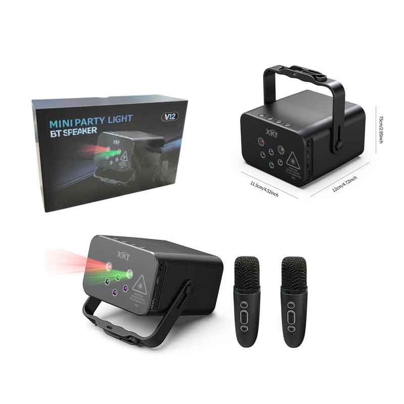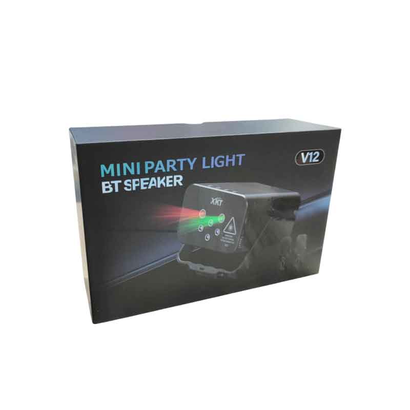 Το απόλυτο gadget για κάθε πάρτι! Το Mini Party Light BT Speaker V12 συνδυάζει πολύχρωμο φωτισμό λέιζερ, ισχυρό ηχείο Bluetooth και 2 ασύρματα μικρόφωνα για καραόκε, μουσική ή ανακοινώσεις. Ιδανικό για εσωτερικούς και εξωτερικούς χώρους, με εντυπωσιακή εμφάνιση και εύκολη φορητότητα χάρη στη λαβή του.