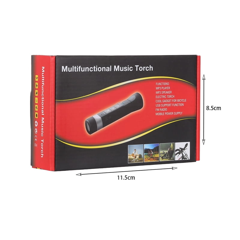 1. Πολυλειτουργικός Μουσικός φακός 2. Υλικό: ABS + Λάδι από καουτσούκ 3. Έκδοση Bluetooth: 4.1 4. Προδιαγραφές ηχείου: 4ohm/3W 5. Μπαταρία: 2000mAh 6. Χρόνος Μουσικής: 3-4 Ώρες 7. Εφαρμογή: Ηχείο Bluetooth, Power Bank, φακός LED, Ραδιόφωνο FM, Κάρτα TF ΤΟ ΠΑΚΕΤΟ ΠΕΡΙΛΑΜΒΑΝΕΙ: 1 x Multifunctional Music Torch Black MMT001B 1 x Καλώδιο Micro-USB Προσοχή: Το προϊόν διατίθεται σε διάφορα χρώματα και σχέδια και η επιλογή γίνεται τυχαία, βάσει διαθεσιμότητας. Η τιμή αφορά ένα (1) τεμάχιο και όχι το σύνολο των προϊόντων που απεικονίζονται στη φωτογραφία.