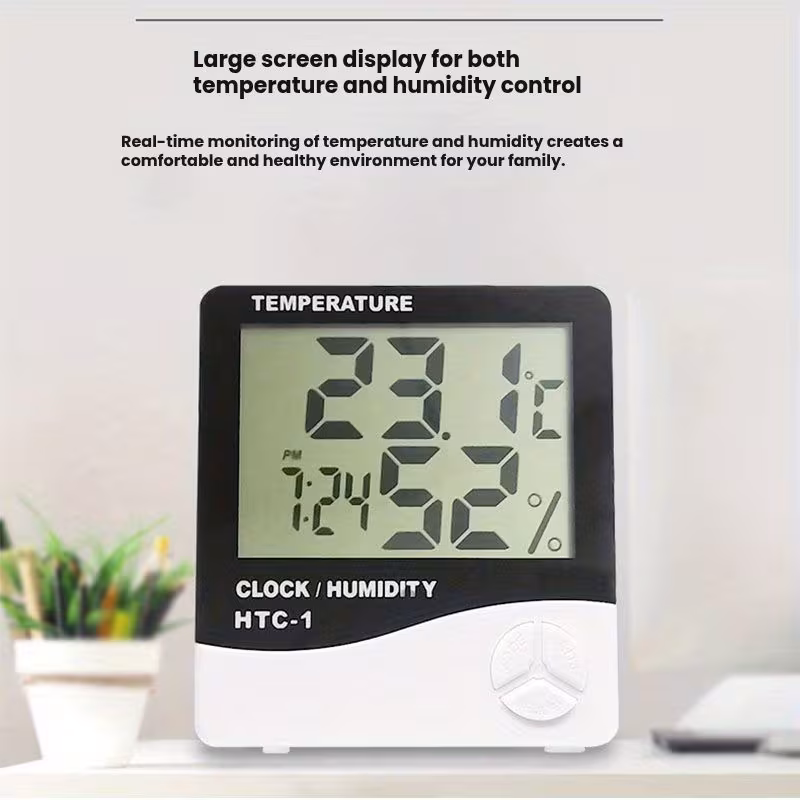 1 τεμ. Ψηφιακό Θερμόμετρο Υγρασιόμετρο – Ξυπνητήρι/Εφεμερίδα | Μεγάλη Οθόνη Επιτραπέζια Βάση, Επιτοίχια, Πλαστικό, Λειτουργεί με Μπαταρία, Ιδανικό για Υπνοδωμάτιο/Σπίτι/Ξενοδοχείο,