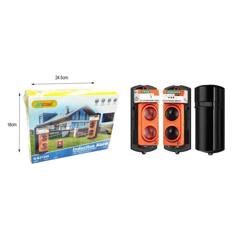Andowl Ανιχνευτές με Διπλή Δέσμη εξωτερικού χώρου με συναγερμό Q-BJ1250- Induction Alarm