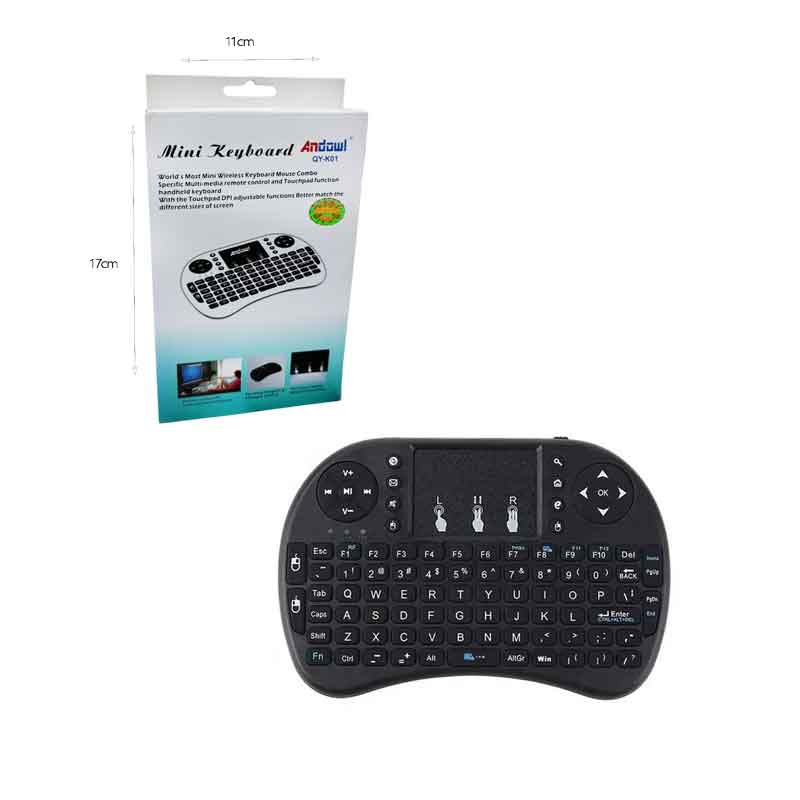 To Mini Wireless Keyboard QY-K01 είναι ένα ασύρματο πληκτρολόγιο και ποντίκι με επιφάνεια αφής, μικρών διαστάσεων. Είναι ιδανικό για σύνδεση με συσκευές παρουσιάσεων αλλά και για χειρισμό της smart τηλεόρασής σας. Περιέχει επαναφορτιζόμενη μπαταρία Ιόντων Λιθίου και υποδοχή συμβατή με USB 2.0 και πάνω.
