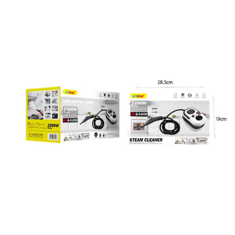 Αποτελεσματικός καθαριστής ατμού από την Andowl με ισχύ 2200W, ιδανικός για βαθύ καθαρισμό σε κουζίνα, μπάνιο, υφάσματα, αρμούς και δύσκολους ρύπους. Θερμαίνεται σε μόλις 15 δευτερόλεπτα και παράγει πίεση ατμού 3 bar για απολύμανση και καθαριότητα χωρίς χημικά.