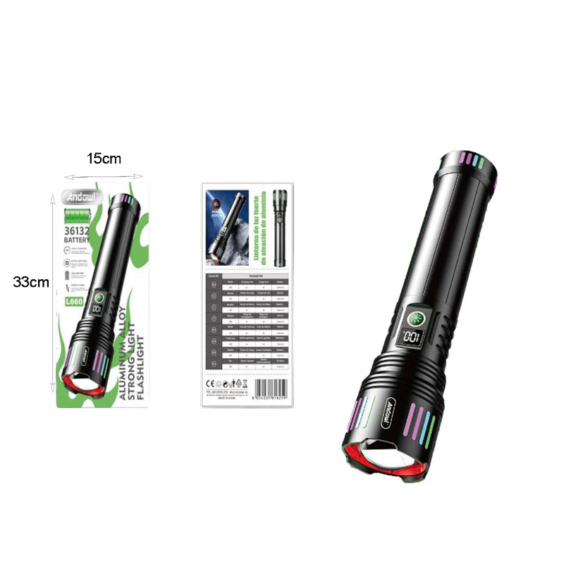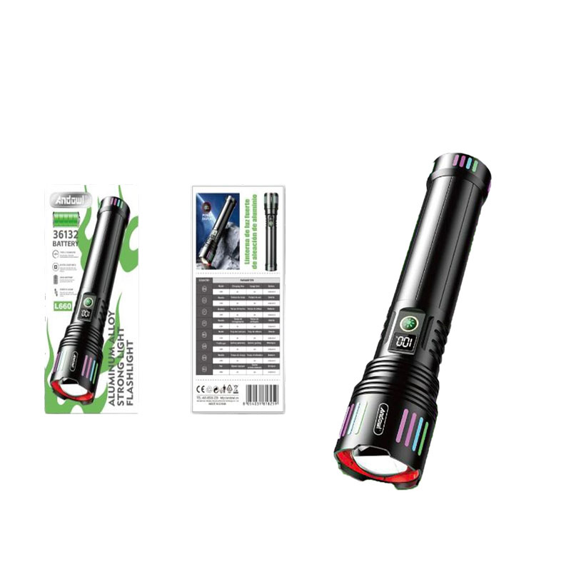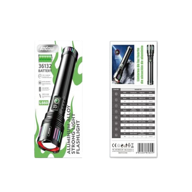 Andowl Επαναφορτιζόμενος Φακός Led 2000mAh με 5 λειτουργίες με δυνατότητα ζουμ L660 – Aluminum Alloy Strong Light Flashlight
