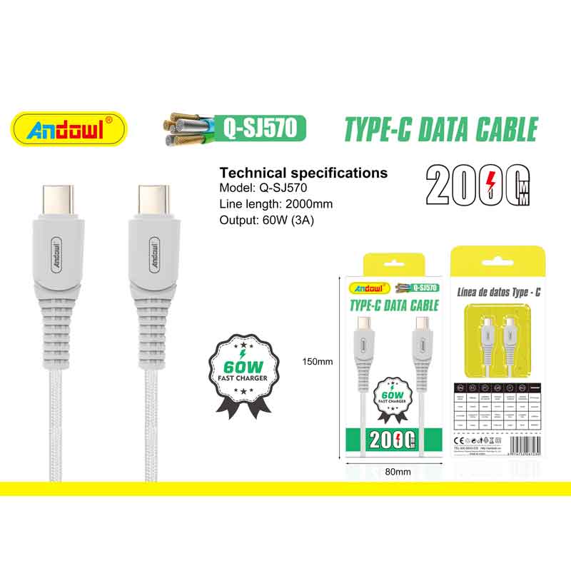 Andowl Καλώδιο δεδομένων Type-c σε Type-c 60W 2Μ Q-SJ570 – Data Fast Cable