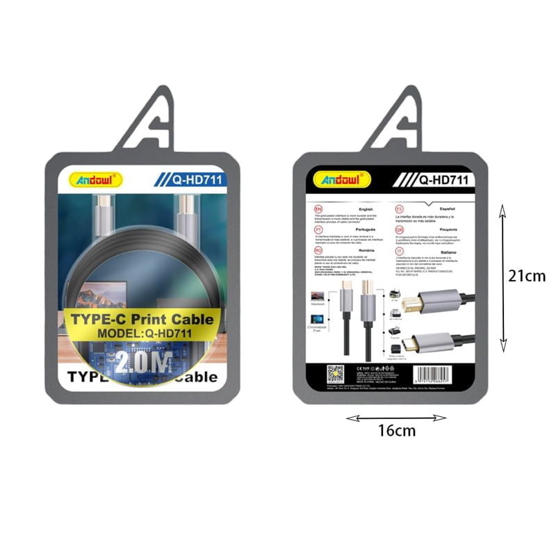 Andowl Καλώδιο εκτυπωτή Type-C 2.0M Q-HD711 – Type-C Print Cable