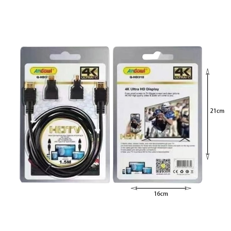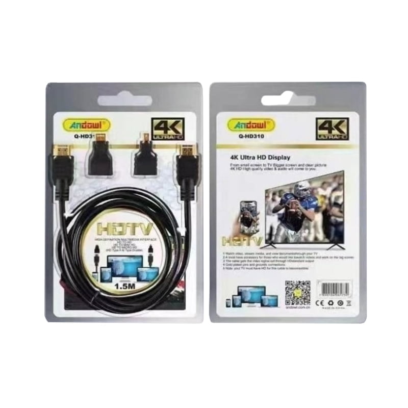 Andowl Καλώδιο οθόνης 4K Ultra HD HD310 – Cable HDMI male – HDMI male 1.5m Μαύρο