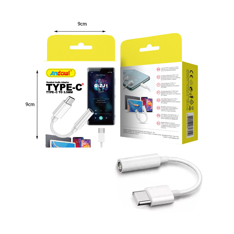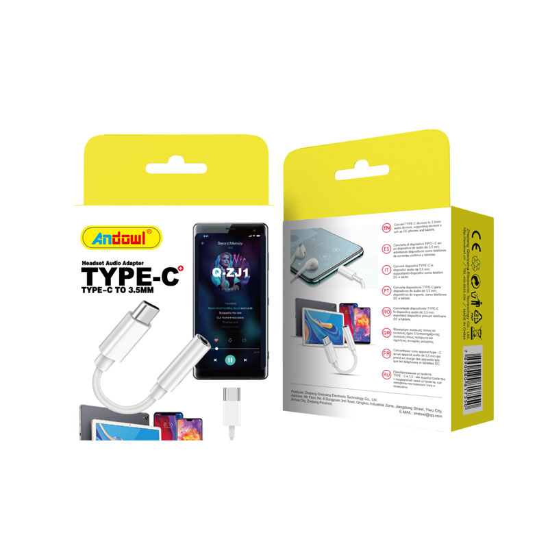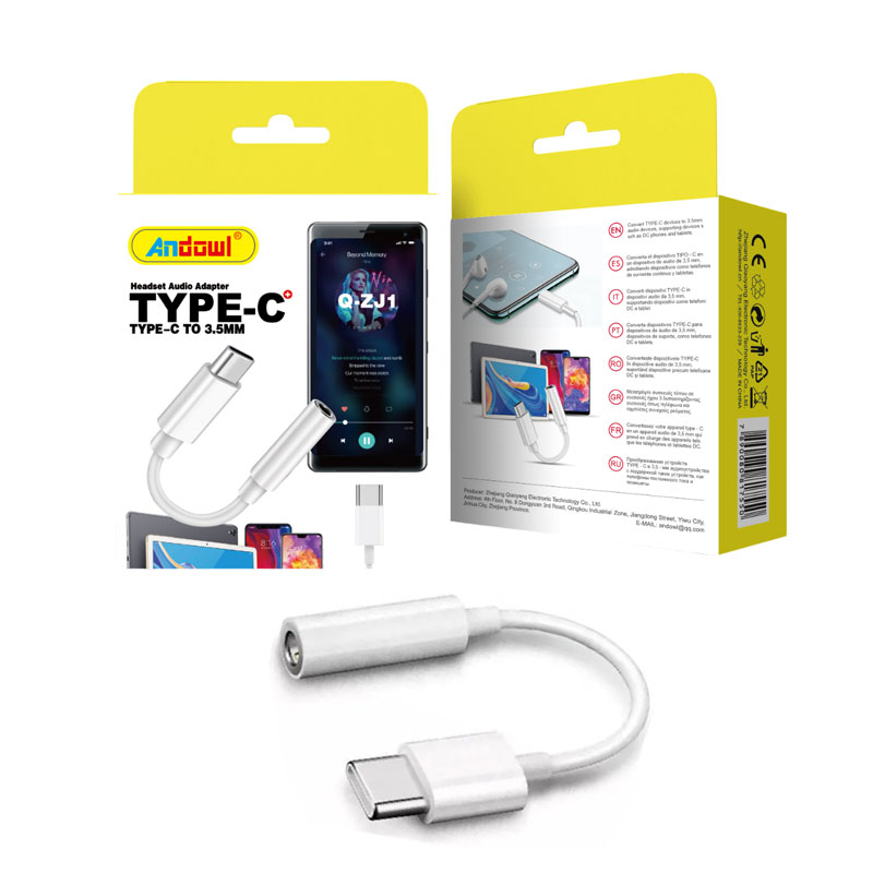 Αντάπτορας που συνδέει έναν αρσενικό ακροδέκτη USB-C με μια θηλυκή θύρα 3.5mm.