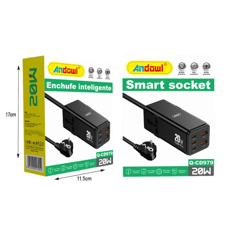 Andowl Πολύπριζο 3 Θύρες Type-C και 2 USB Θύρες Q-CS979 – Smart Socket