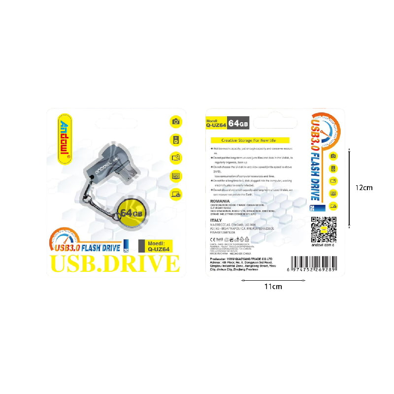 Andowl Στικάκι USB 3.0 Flash Drive 64GB Q-UZ64 – Flash Drive