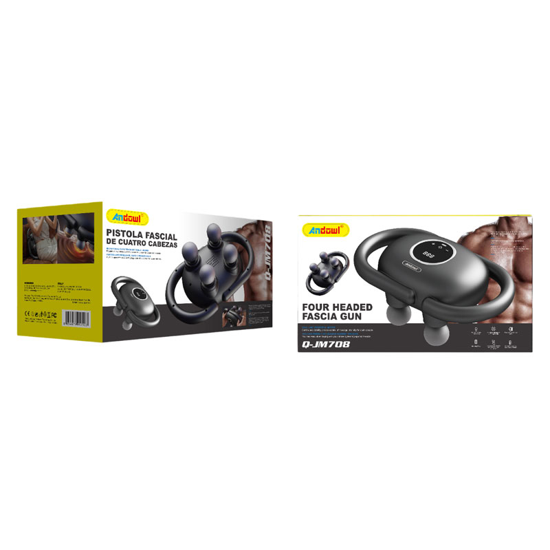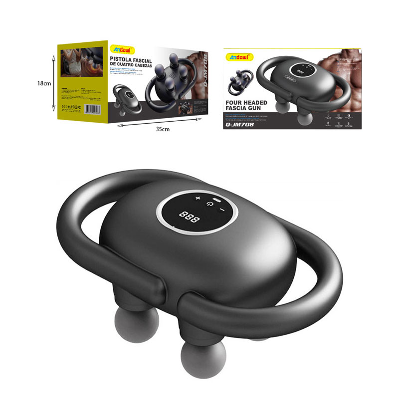 Επαναστατική συσκευή μασάζ και μυοχαλάρωσης Fascial με 4 δονούμενες κεφαλές-σφαίρες από ελαστικό υλικό και δύο χειρολαβές για άνετη χρήση.