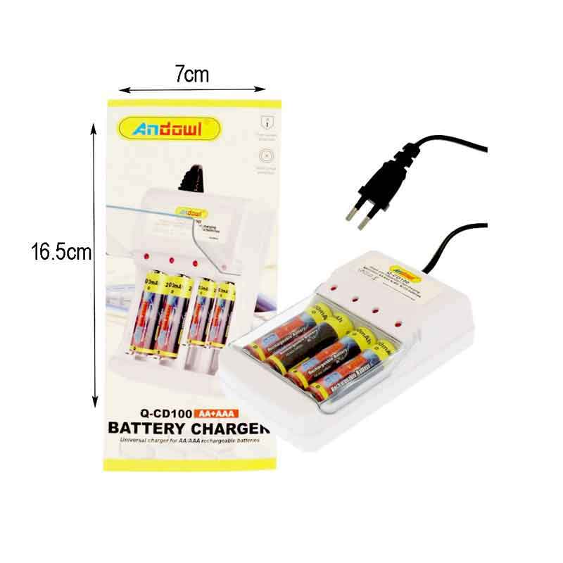 Andowl Φορτιστής 4 Μπαταριών Ni-MH Μεγέθους AA/AAA σε Λευκό χρώμα Q-CD100