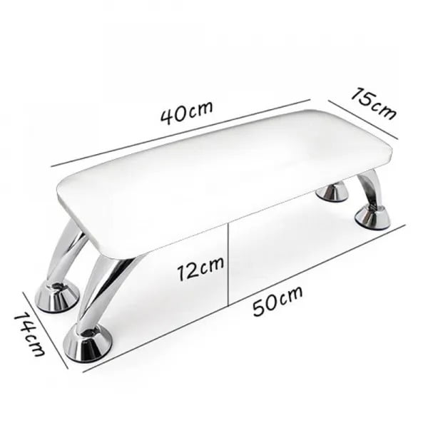 Μετά από μήνες δοκιμών από επαγγελματίες nail artists, παρατηρήθηκε: -Άνεση κατά την εκτέλεση της τεχνικής εργασίας (λόγω του κατάλληλου ύψους του μαξιλαριού, o επαγγελματίας μπορεί να εκτελέσει το μανικιούρ σε μια άνετη θέση, χωρίς να αλλάξει θέση και χωρίς να καταπονήσει την μέση και την σπονδυλική στήλη. -Άνετη θέση για τον πελάτη, χωρίς να τον κουράζει -Κατασκευασμένο με οικολογική δερματίνη υψηλής ποιότητας και επενδεδυμένο εσωτερικά με παχύ και άνετο σφουγγάρι που δεν κουράζει και δεν καταπονεί το χέρι καθ’ όλη την διάρκεια του μανικιούρ -Εξαιρετικής ποιότητας υλικό εύκολο στον καθαρισμό και την απολύμανση -Η αίσθηση του ‘’χαλαρού χεριού’’, του πελάτη όταν τοποθετεί το χέρι στο μαξιλάρι, βοηθάει τον επαγγελματία κατά την διάρκεια της τεχνικής εργασίας -Ιδανικο ύψος με Δυνατότητα τοποθέτησης οποιαδήποτε συσκευής πολυμερισμού στο κάτω μέρος -Εργονομική συμπαγής κατασκευή και μεγάλη επιφάνεια εργασίας -4 πόδια στήριξης κατασκευασμένα απο ανοξείδωτο ατσάλι ,τοποθετημένα σε ιδανική απόσταση για μέγιστη σταθερότητα -Εντυπωσιακή εμφάνιση και επένδυση με PU Leather Marble που προσθέτει κομψότητα και στυλ