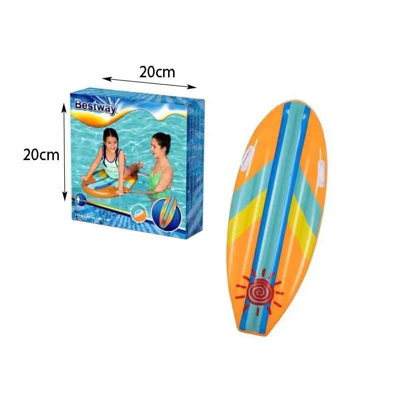 Η φουσκωτή σανίδα κολύμβησης είναι ο ιδανικός τρόπος για να διαφοροποιήσετε τη διασκέδαση του παιδιού σας στο νερό. Είναι κατάλληλη για παιδιά άνω των 3 ετών. Διαθέτει δύο πρακτικές λαβές που επιτρέπουν στο παιδί σας να αισθάνεται σταθερό. Η σανίδα είναι κατασκευασμένη από ανθεκτικό PVC υλικό που είναι ανθεκτικό στις ζημιές, επομένως δεν χρειάζεται να ανησυχείτε μήπως αναπάντεχες καταστάσεις χαλάσουν τη χαρά του παιδιού σας. Σε περίπτωση μεγαλύτερων προβλημάτων, περιλαμβάνεται επίσης και μια επανορθωτική επιφάνεια στο σετ. Παρά τις διαστάσεις της, η σανίδα είναι ελαφριά και ευέλικτη για το παιδί.